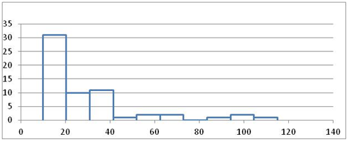 Scientists collected \(n = 61\) measurements of the lead concentration in the soil, measured in mg/kg. The data are given in the file Uranium Plant Data-Lead.