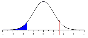 If the alternative hypothesis involves less than (such as \(\mu<98.6\),) we call it a left-tailed test. For a left-tailed test, the \(P\)-value is the area under the standard normal curve to the left of the test statistic, \(z\).