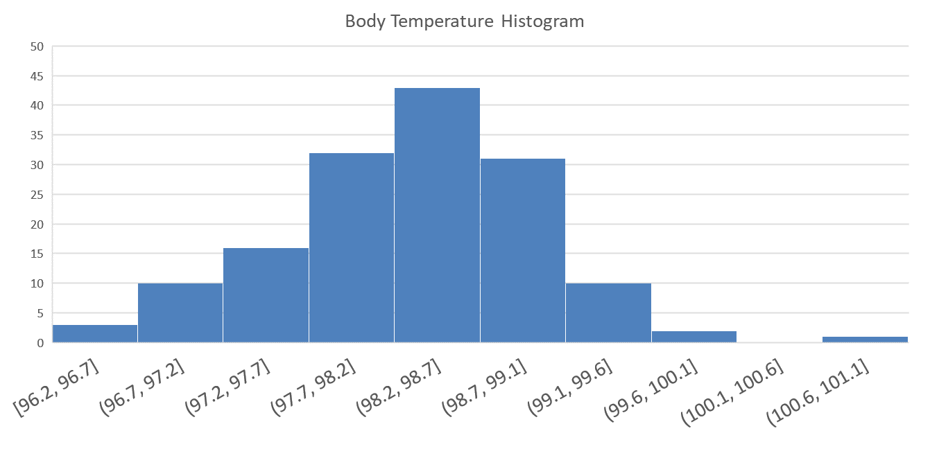 A group of researchers led by Philip A. Mackowiak, MD, conducted a study to assess the true mean body temperatures of healthy adults. They selected \(n=148\) subjects between the ages of 18 and 40 years old, representative of the general population. Each volunteer was given a physical to assure that they were not ill at the time of the data collection. Their axillary body temperature was measured and reported in a paper published in the “Journal of the American Medical Association”. These data were extracted and are presented in the file BodyTemp. The body temperatures in the file are given in degrees Fahrenheit. Based on historical data, the standard deviation of body temperatures is assumed to be \(\sigma = 0.675\)° F.