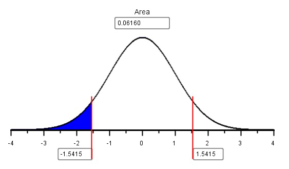 In the case of a two-sided test for one mean with \(\sigma\) known, the \(P\)-value is the area in the tails beyond \(\pm z\), in both the left and right tails of the standard normal distribution.