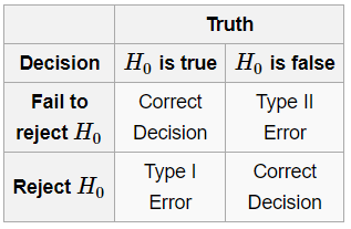 The level of significance (\(\alpha\)) controls the probability of committing a Type I Error. It is the standard for determining whether or not the null hypothesis should be rejected. Typical values for \(\alpha\) are \(0.05\), \(0.10\), and \(0.01\). If the \(P\)-value is less than \(\alpha\) we reject the null. If the \(P\)-value is not less than \(\alpha\) we fail to reject the null.