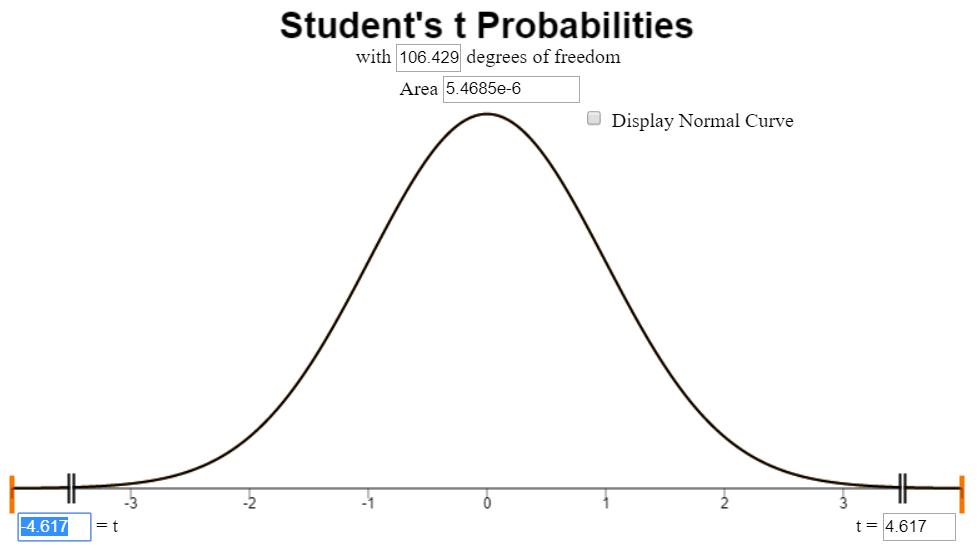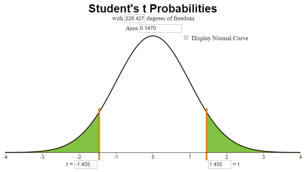 You will notice that this is not a whole number. This is called the Satterthwaite approximation for the degrees of freedom. Do not worry that this is not an whole number. Just record the value as it is given to you in the software.