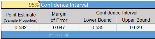 Finding confidence intervals for one proportion using only a calculator is tedious. An Excel spreadsheet has been created to help you quickly and accurately perform these calculations. You will use this spreadsheet throughout this and other lessons.