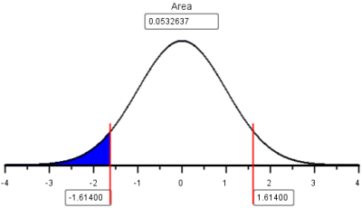 The combined area in the two tails is 0.1984, which is greater than \(\alpha = 0.05\). We fail to reject the null hypothesis.