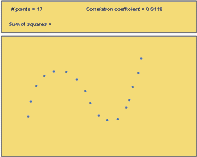 The following figures illustrate possible situations where the relationship between two variables does not follow a straight line. There can be a very strong relationship between the variables and still not have a strong correlation. Conversely, you can have a correlation coefficient that is close to zero, even though there is a perfect nonlinear association between the data.