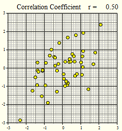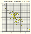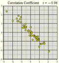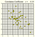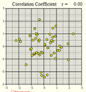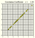 Several scatterplots have been created, and the correlation coefficient summarizing the relationship between the two variables is presented. Study these graphs to see if you can infer some of the properties of the correlation coefficient.