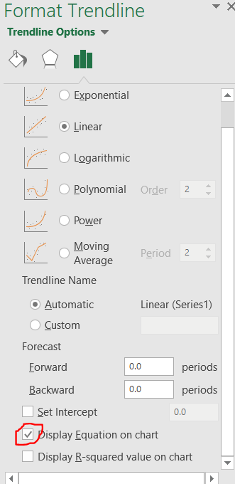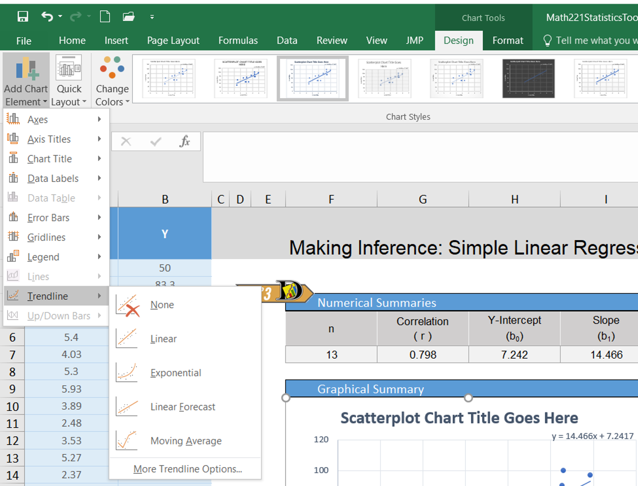 To use Excel to predict the value of \(Y\) for any specified value of \(X\), do the following: